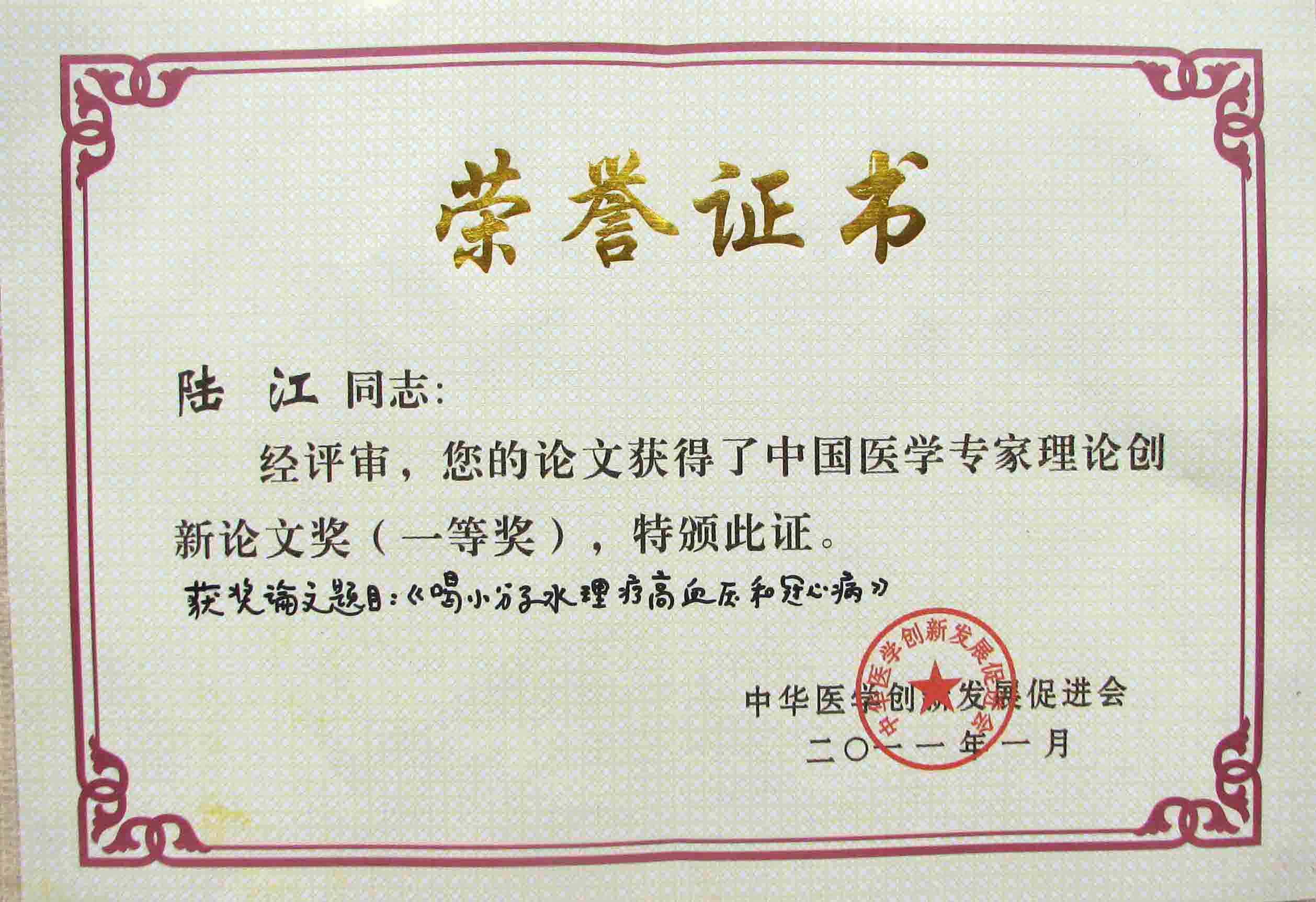 人類幾千年來患以上病癥需終生服藥,幾十年也不能治愈。可是我國南寧的高級工程師陸 江,于1990年想根治高血壓,研究發明了離子水瓶,處理出微小分子團水供飲用,經過醫院臨床試用和專家鑒定,1999年獲中國發明專利權,產品于2000年投放市場后一直跟蹤調查,據全國各地用戶反饋:祛除了高低血壓、糖尿病和冠心病,并使前列腺增生、咽喉炎、鼻竇炎、慢性氣管炎、支氣管炎、矽肺病、哮喘、慢性胃炎、腸炎、慢性膽囊炎、慢性腎炎、腎衰、膀胱炎、便秘、痔瘡、風濕性關節炎和濕疹皮炎及中風后遺癥等病癥不藥而愈。為什么喝微小水能治20多種病?陸 江從1991年德國科學家發現細胞膜水通道僅為2納米獲得啟發,認為多種器官患病是因細胞脫水,不能正常代謝和分裂增殖,才使器官細胞減少致衰弱萎縮而形成細胞缺水性病癥。22年來的實踐有力地支持了“細胞脫水致病”這一重要論點,表明喝微小水可滿足細胞的生理需求,補水就能祛病,是生命科學新亮點。